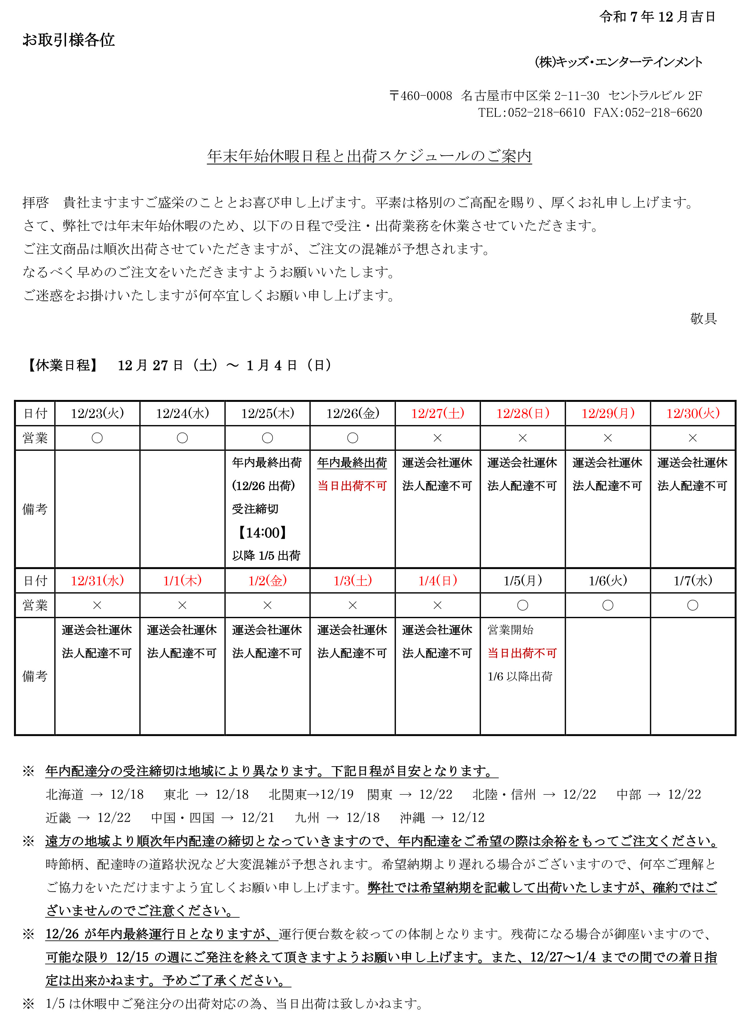 【2025】年末年始休暇日程と出荷スケジュールのご案内