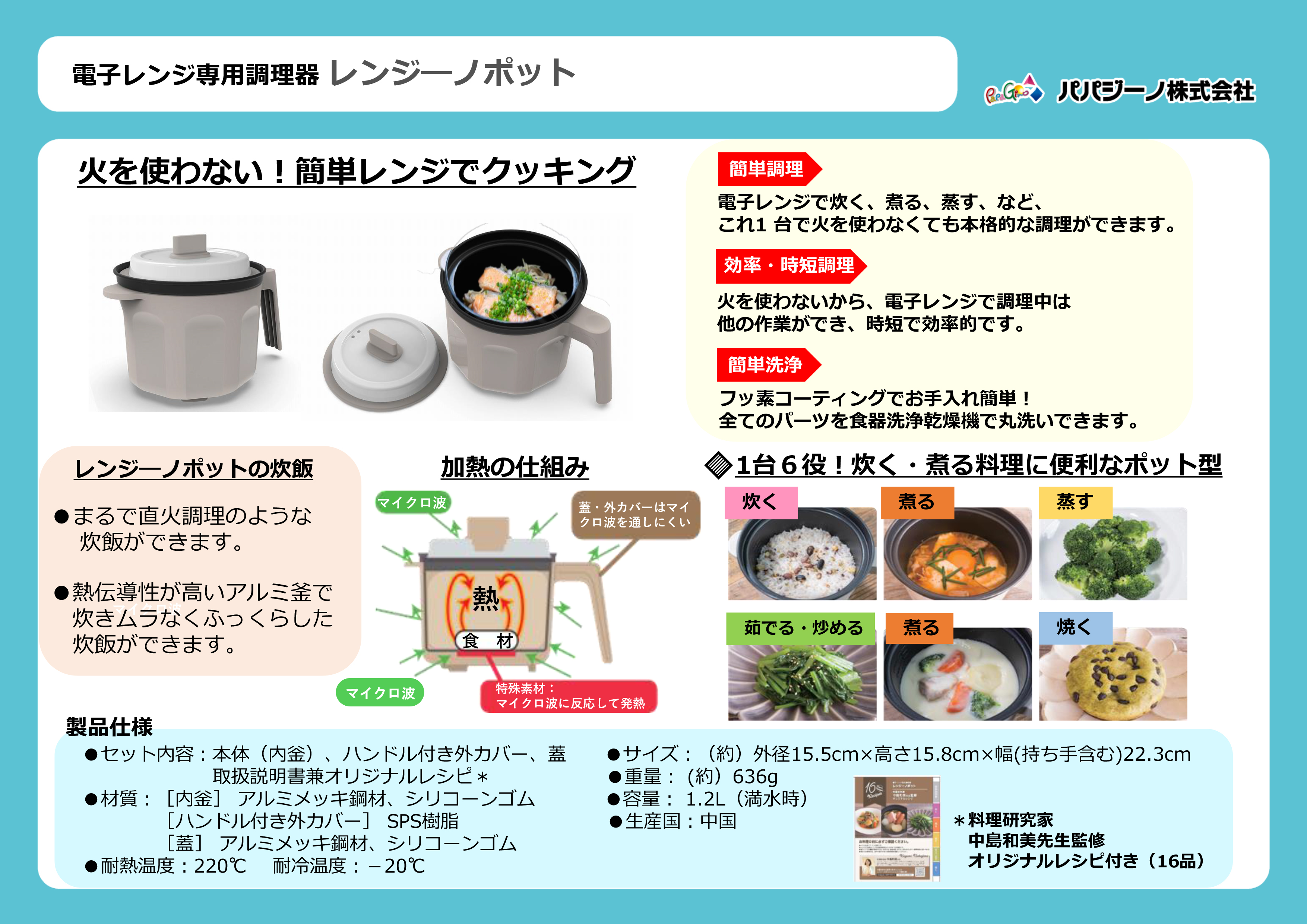 | サイズ | 約 外径 15.5cm × 高さ 15.8cm × 幅 持ち手含む )22.3cm、約 636g |