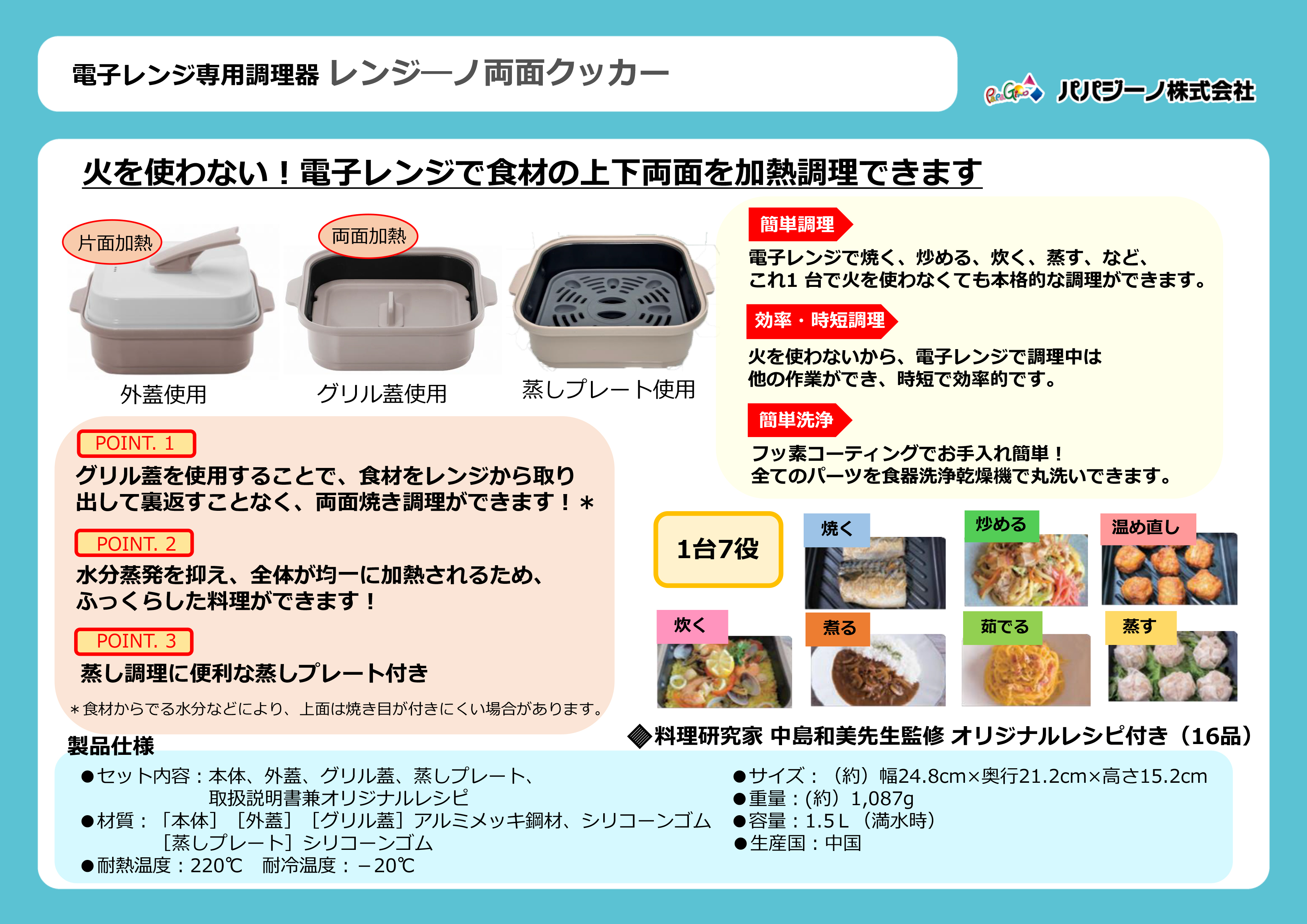 | 素材 | 「 本体][外蓋][ グリル 蓋]アルミメッキ鋼材、シリコーンゴム [蒸しプレート]シリコーンゴム |